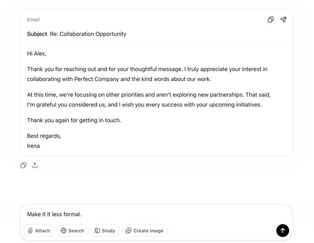 Sometimes you need assertiveness. Other times warmth. ChatGPT can create multiple versions until you find the right fit.